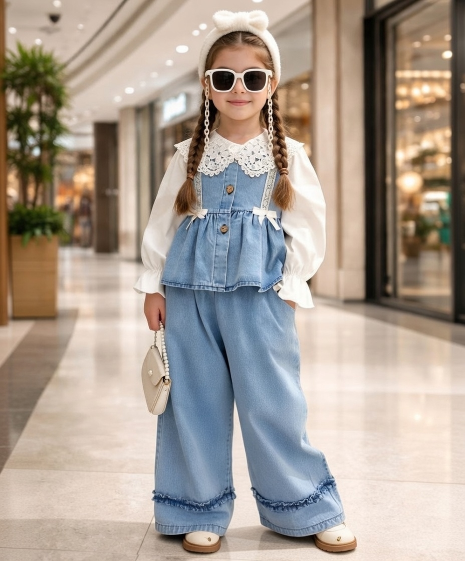 سه تیکه جین نازدار | جنس: بلوز نخ پنبه جلیقه و شلوار جین320 گرم بالا