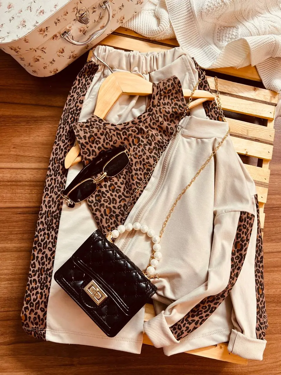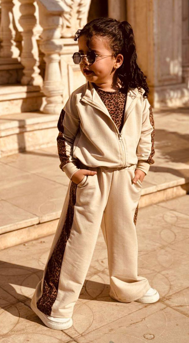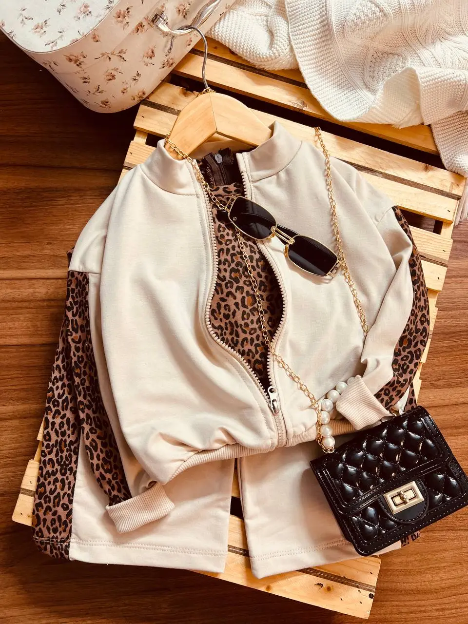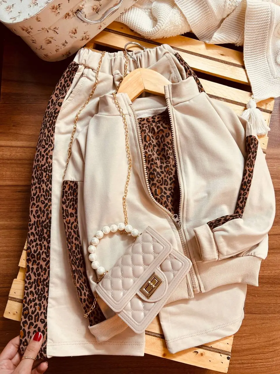 سه تیکه پلنگی | بامبر جکت و شلوار بگ دورس دو نخ و تاپ