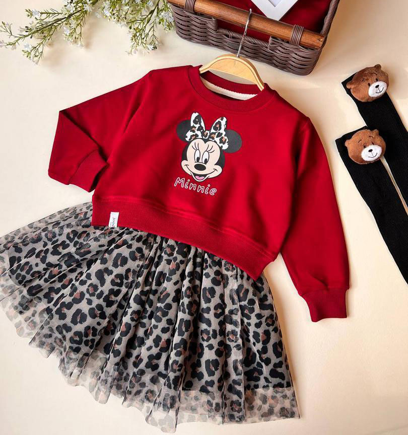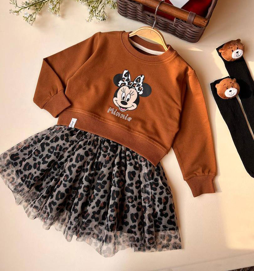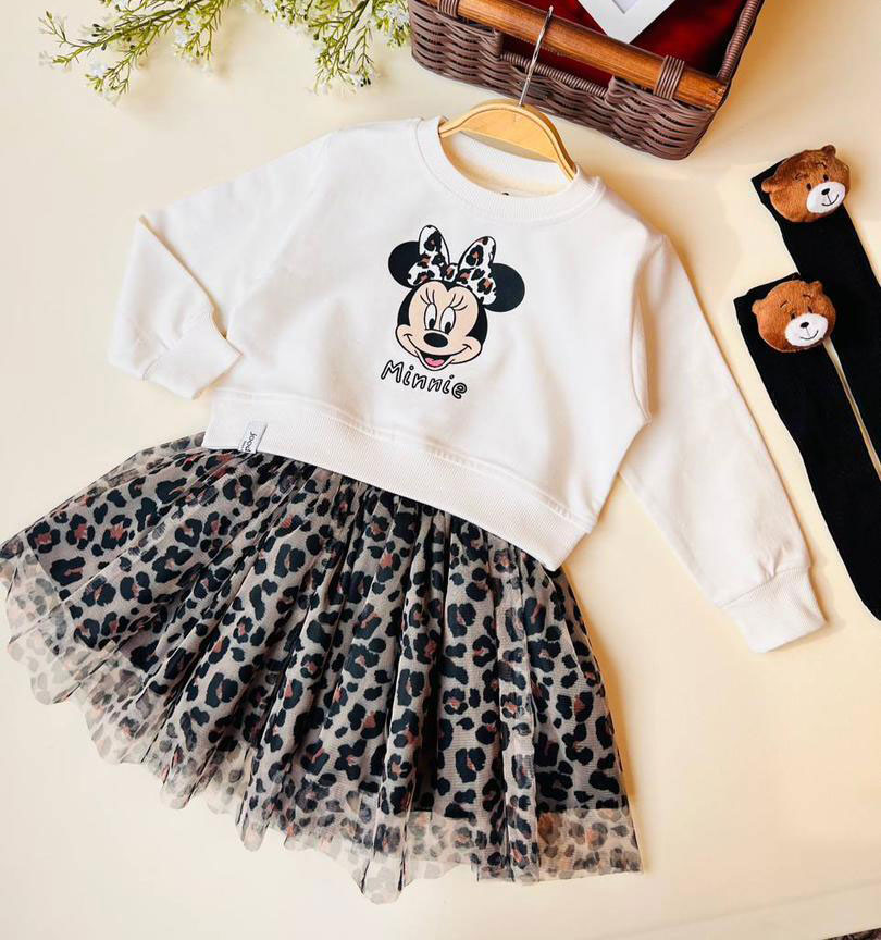 کراپ دامن میکی پلنگی پارچه دورس دونخ ۱۰۰٪ پنبه