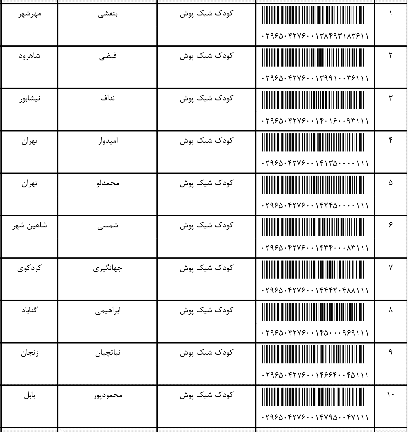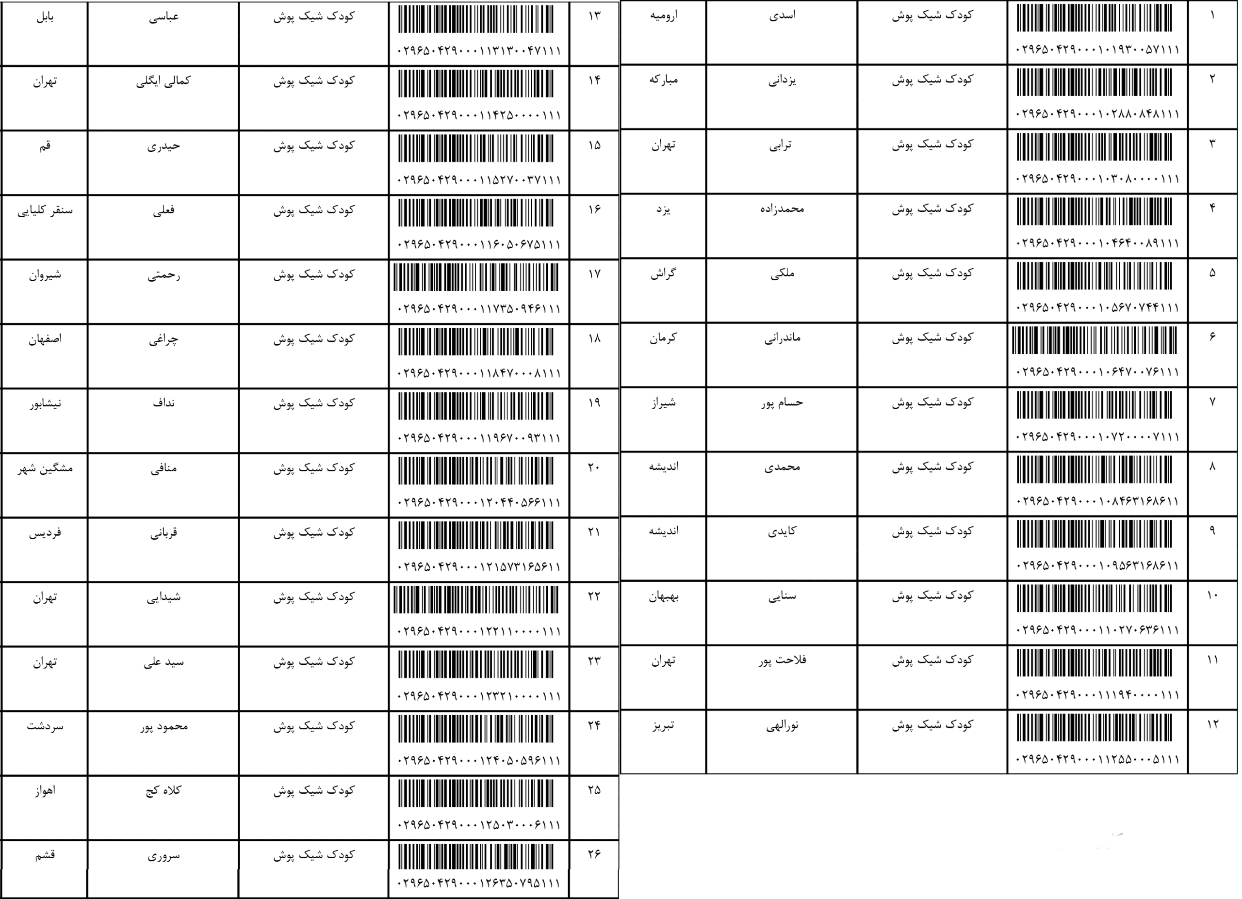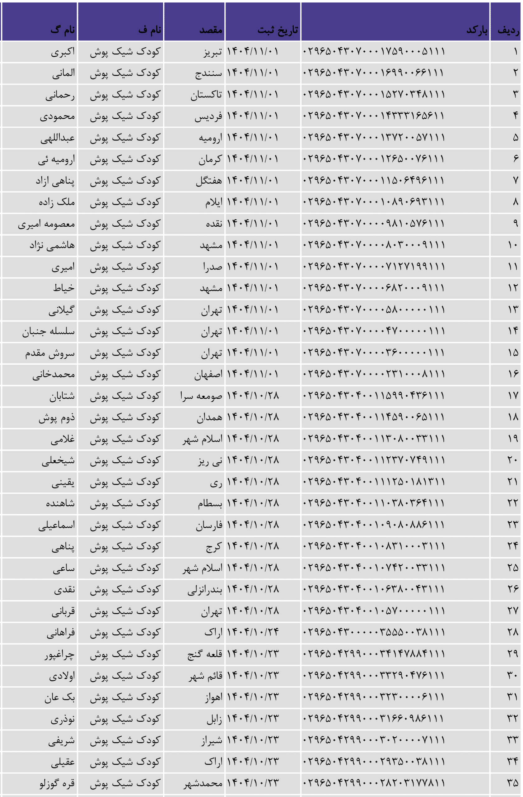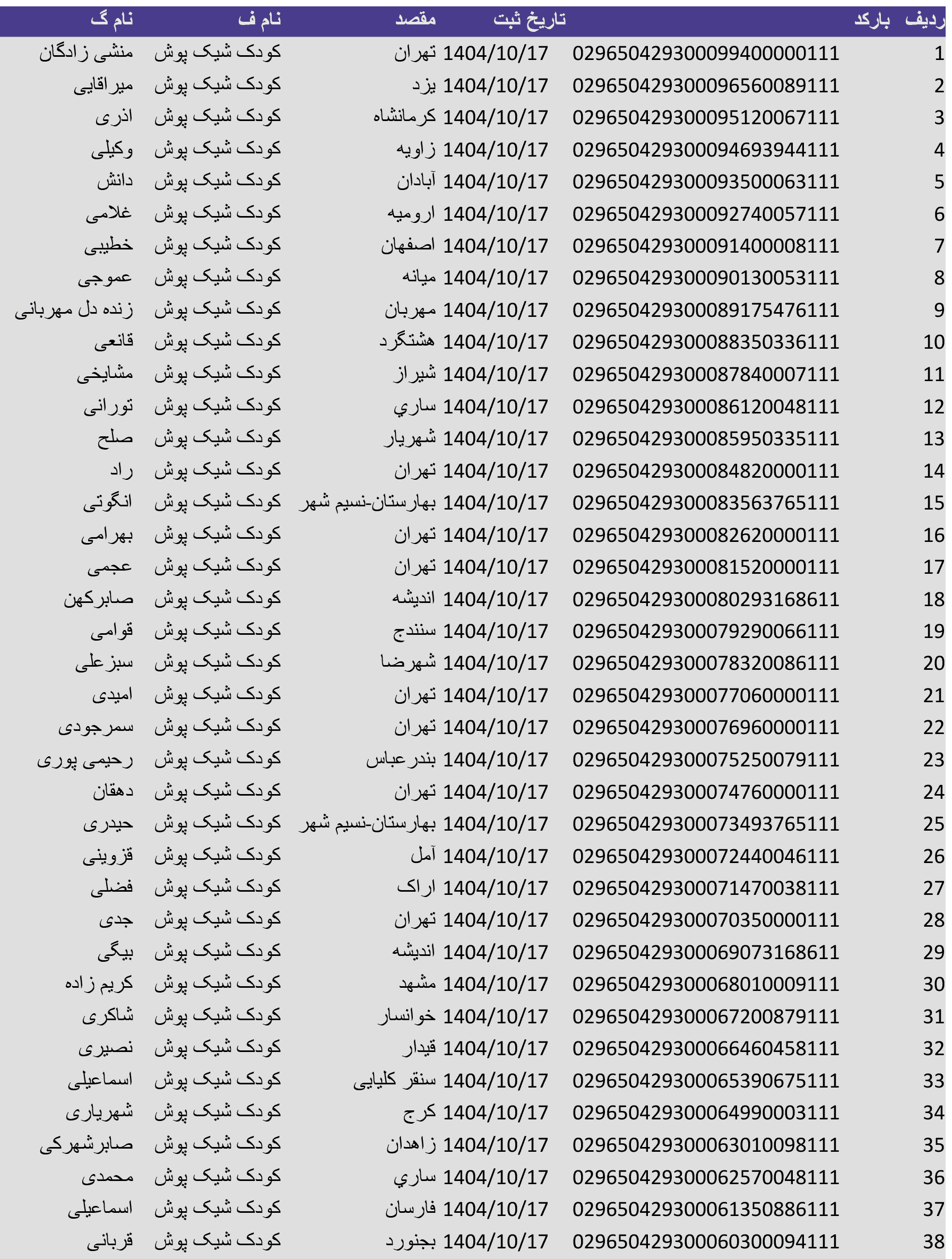 لطفا شماره مرسوله خود را از تصاویر زیر بر اساس نام و شهر خود بیابید و  در سایت رهگیری پست وارد نمایید: