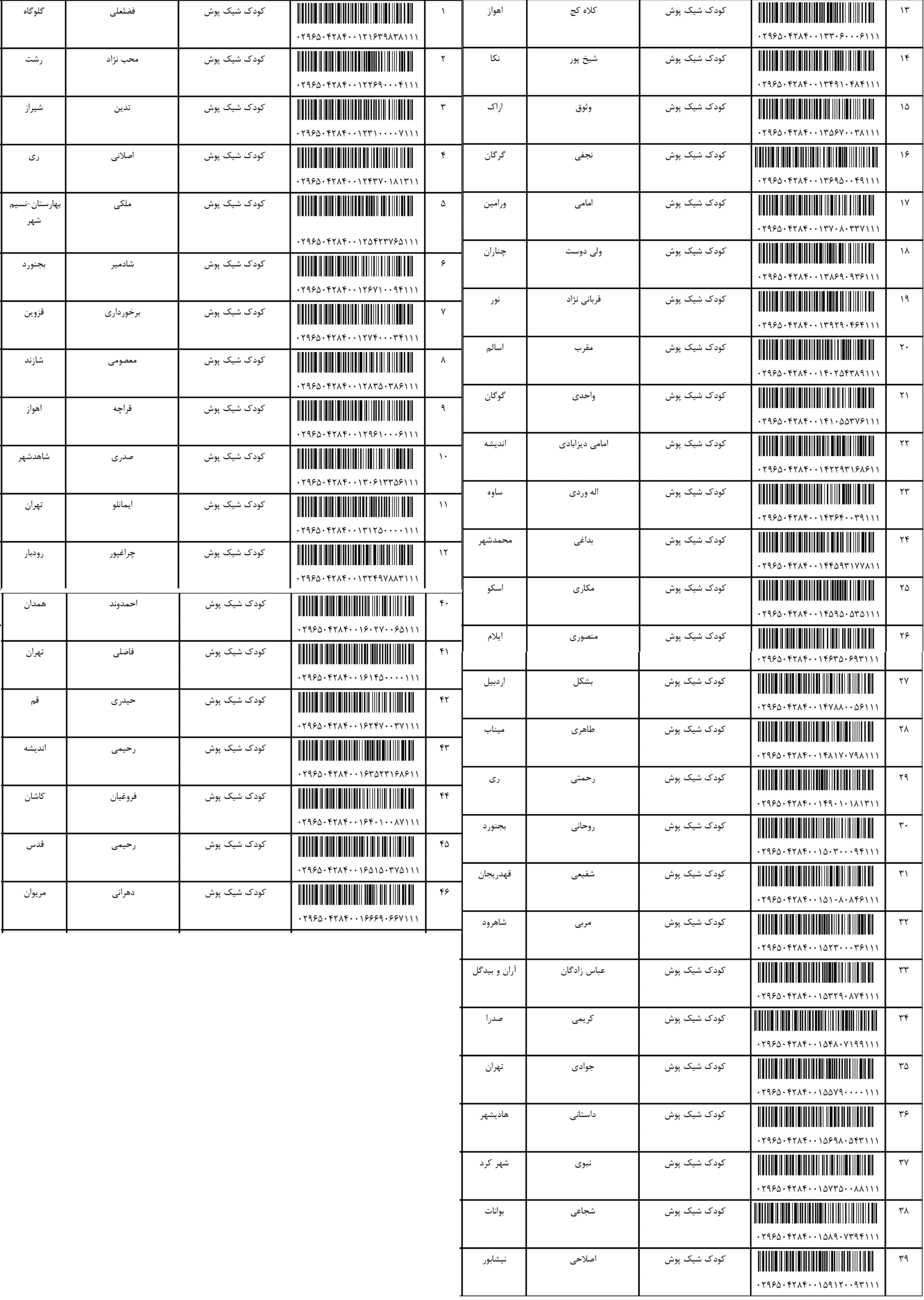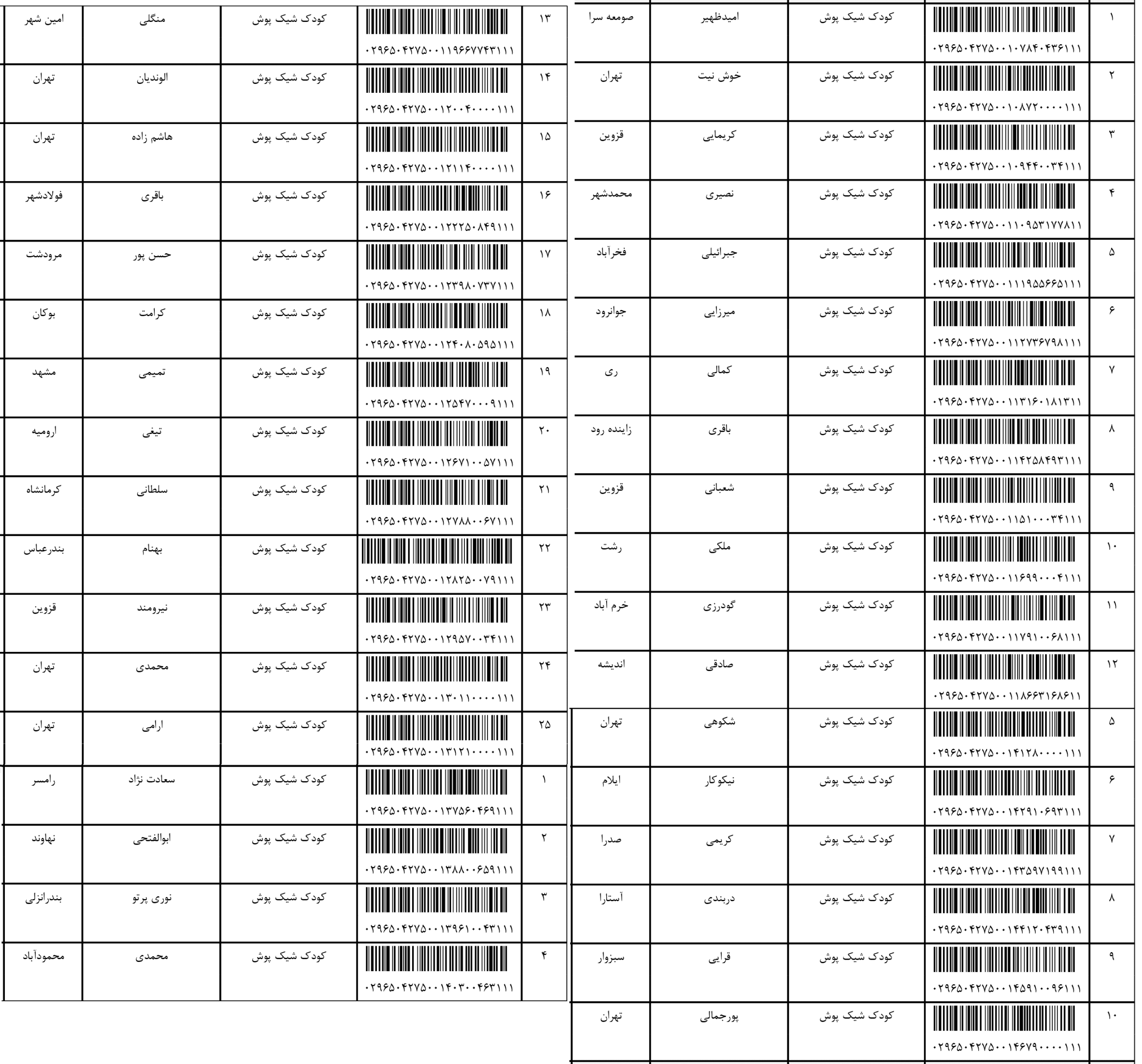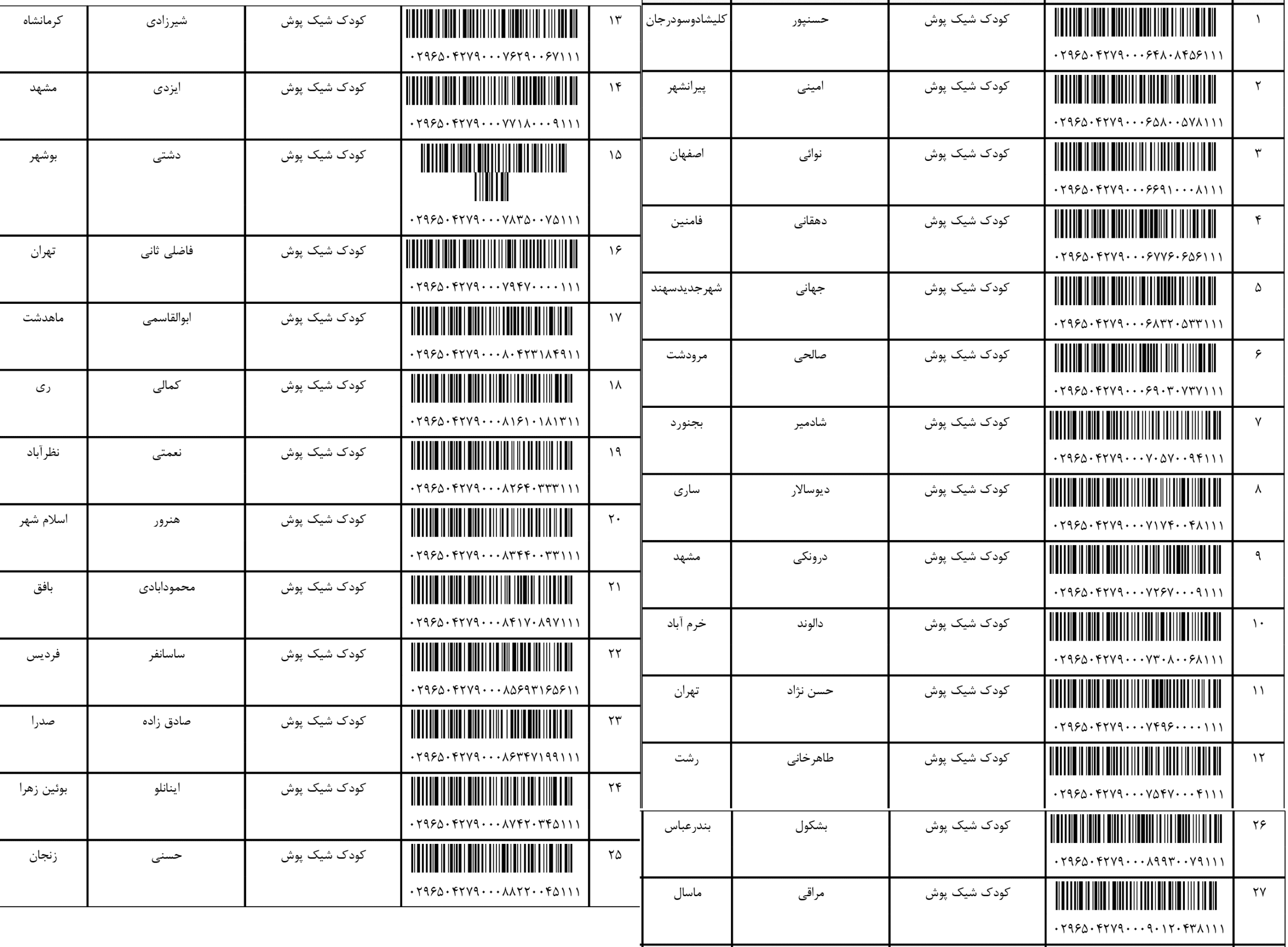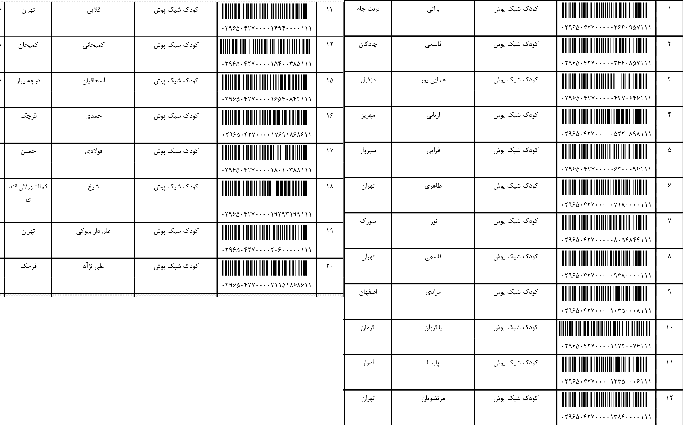 لطفا شماره مرسوله خود را از تصاویر زیر بر اساس نام و شهر خود بیابید و  در سایت رهگیری پست وارد نمایید: